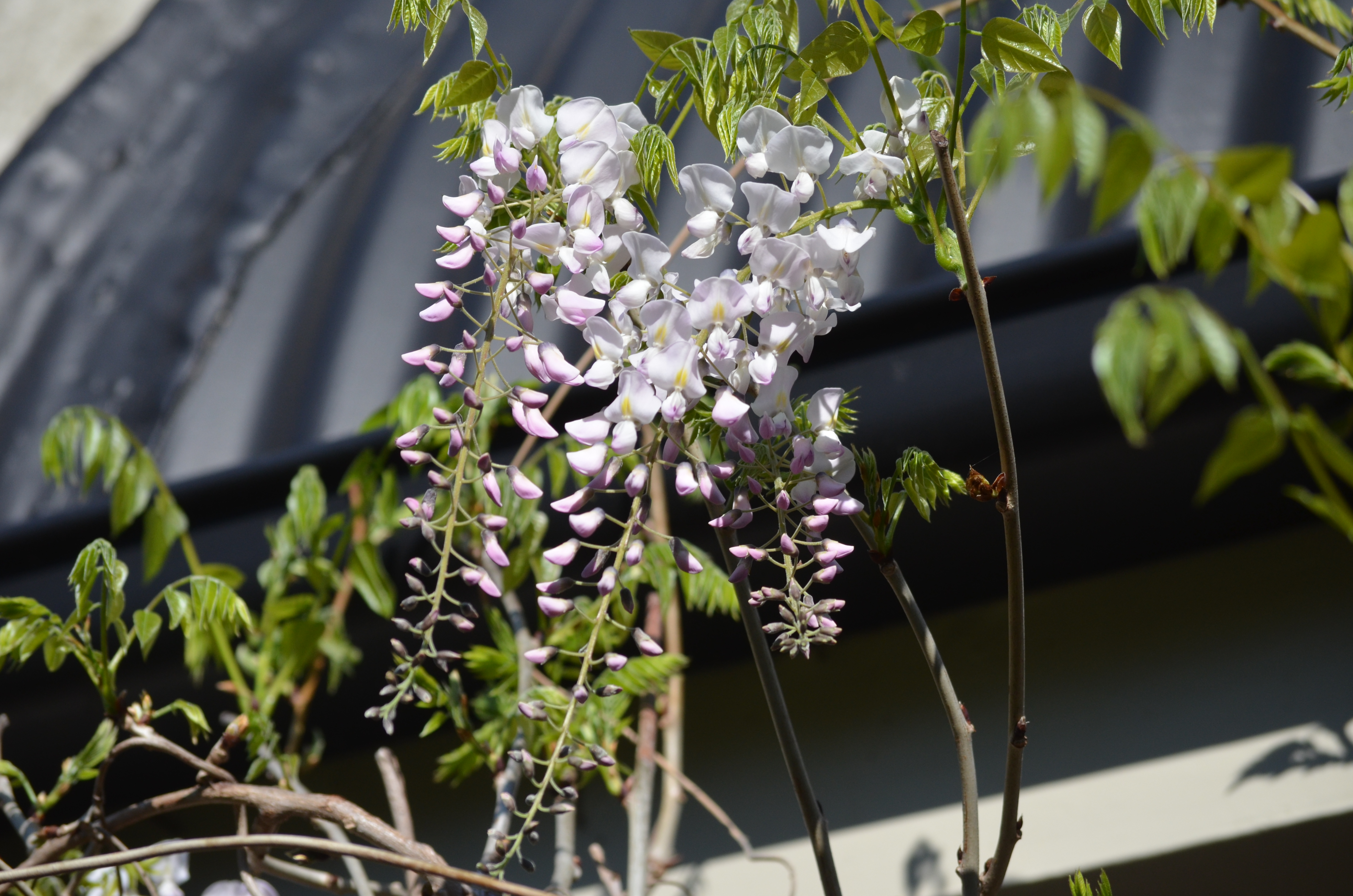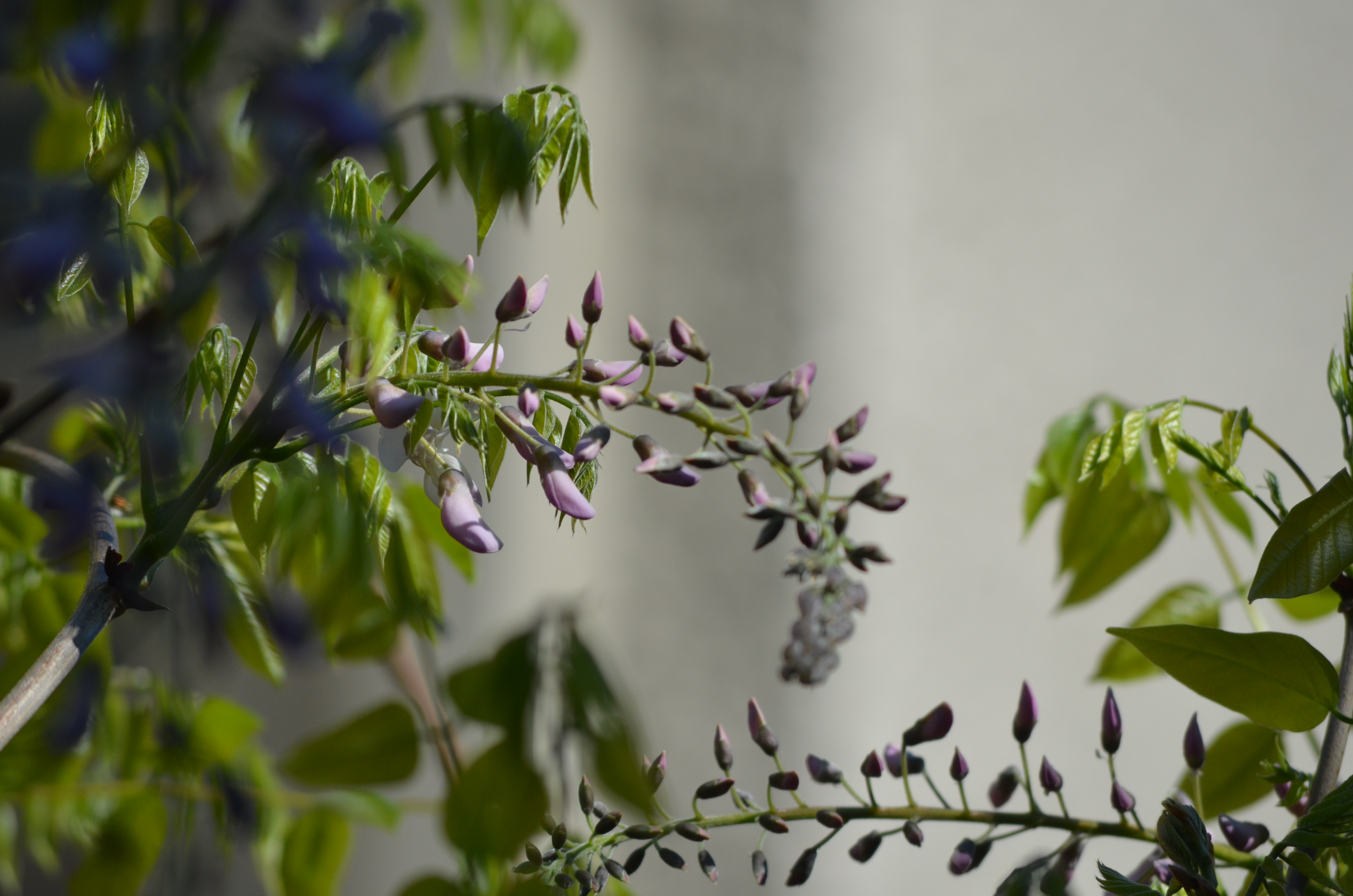 And then I spied something. A hint of acid green Wisteria leaves and a tightly formed white raceme – slivers of promise bending themselves towards the morning light.