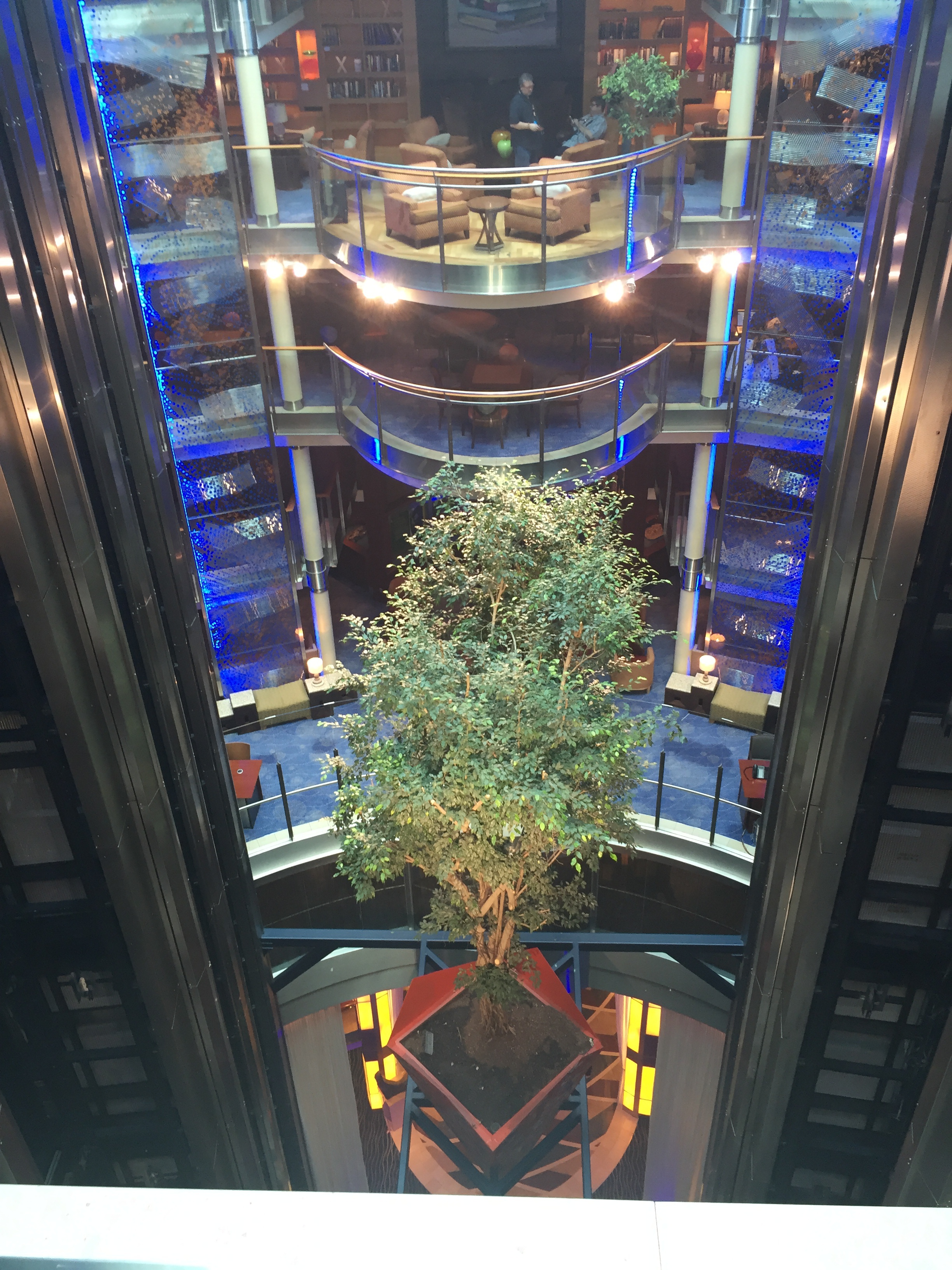 The amazing 12 storey atrium in the centre of the ship, complete with a seven metre Ficus benjamina tree